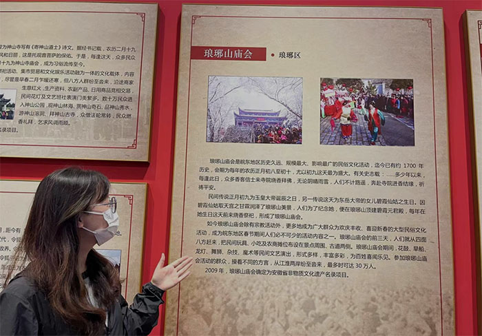 在進(jìn)入文化館之后,小隊(duì)成員先自行參觀了一會(huì),先大致了解了一下文化館內(nèi)展覽的內(nèi)容。滁州市非物質(zhì)文化遺產(chǎn)名錄共有59項(xiàng),分為傳統(tǒng)音樂、傳統(tǒng)舞蹈、傳統(tǒng)美術(shù)、傳統(tǒng)戲曲、傳統(tǒng)技藝、傳統(tǒng)醫(yī)藥、傳統(tǒng)雜技、傳統(tǒng)體育、民俗、民間文學(xué)這10個(gè)類別。這些都是我們中華民族偉大的非物質(zhì)文化遺產(chǎn),這些里面蘊(yùn)含的勤勞、智慧和創(chuàng)造力令我感嘆不已,這是我們民族文化和智慧的結(jié)晶。