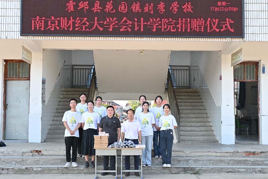 圖為“星火成炬”暑期支教團(tuán)隊(duì)代表南京財(cái)經(jīng)大學(xué)向劉李學(xué)校捐贈(zèng)物資。今日大學(xué)生網(wǎng)通訊員 黃長(zhǎng)飛 供圖