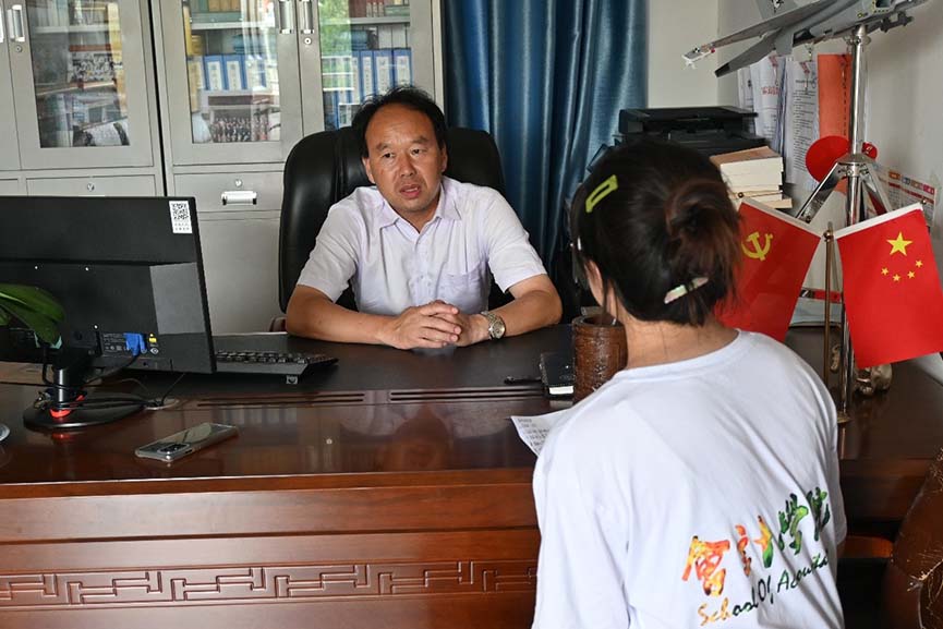 圖為支教團(tuán)成員在對(duì)劉李學(xué)校的羅校長(zhǎng)進(jìn)行采訪。今日大學(xué)生網(wǎng)通訊員 黃長(zhǎng)飛 供圖
