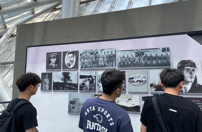 圖為小組成員正在南京抗日航空紀(jì)念館觀看關(guān)于抗日戰(zhàn)爭(zhēng)中我國空軍的英勇事跡。通訊員 顧栓栓 攝
