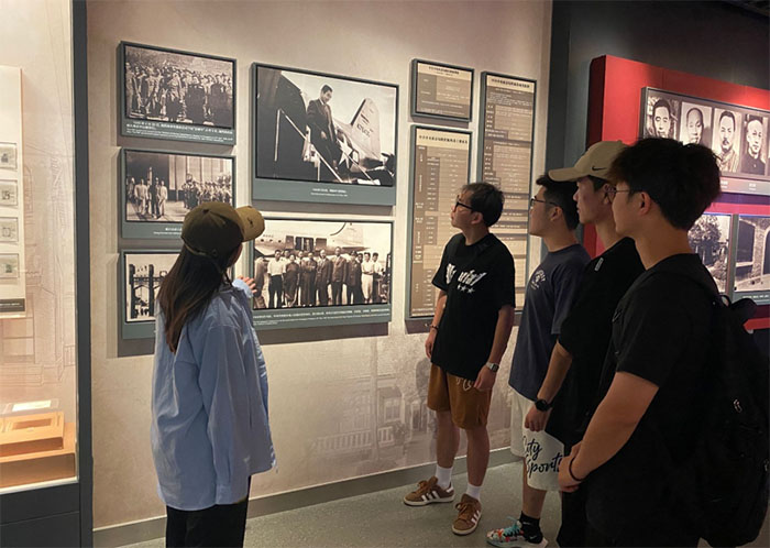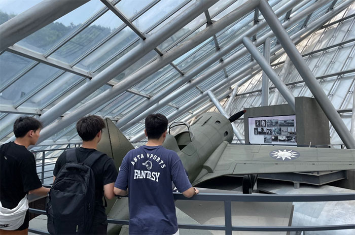 圖為小組成員正在參觀民國時(shí)期,我國空軍部隊(duì)所使用的飛機(jī)。通訊員 顧栓栓 攝
