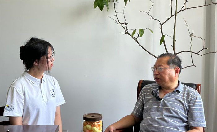 實踐隊員還采訪到湖州師范學院余連祥教授,了解他編著《中國絲綢文化》一書的心路歷程,交流新時代背景下非遺傳承與現代科技結合的相關經驗。余連祥教授提到,學校通過制作線上課程《蠶絲綢文化文創產品》、組織學生參觀民間織造、建立校園版桑葚魚塘等措施,將勞動與蠶絲綢文化有機結合,有效激發了學生的學習熱情。同時,學校組織研究蠶絲綢文化學術論壇,積極探討蠶絲綢文化與高新技術結合可能性。
