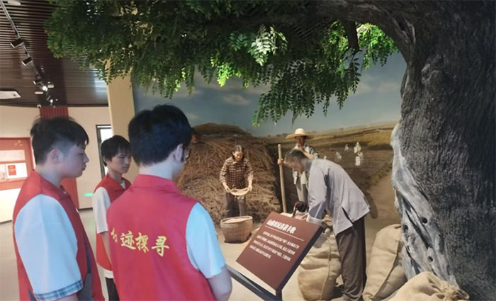 7月27日,團隊成員前往山南鎮小井莊包產到戶紀念館參觀學習。團隊成員順著參觀指引,初步了解了從覺醒·大地之光到新生·滄桑巨變再到綻放·百年圓夢三個部分,全面了解了中國農村改革發源地“包產到戶”的發展歷程,其敢為人先的精神正是長莊村太空蓮種植基地被建立的重要原因。
