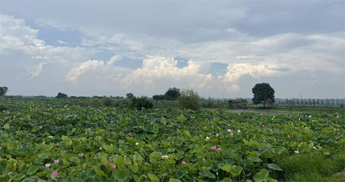 圖為長莊村太空蓮種植基地的部分荷塘 李健偉 攝