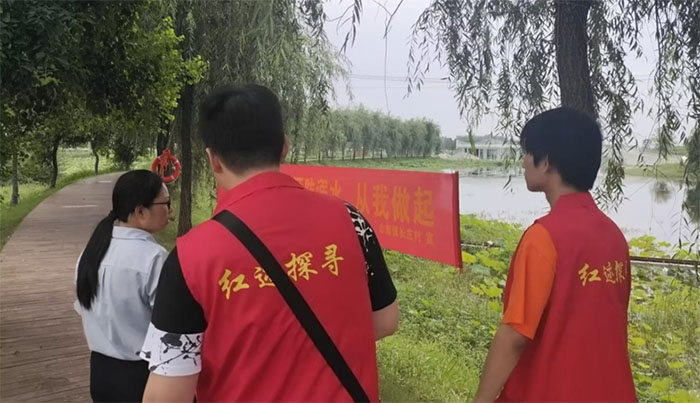 行動之初,何玲帶著隊伍成員前往長莊村的太空蓮種植基地,當隊伍成員跟隨她行走在荷塘中時,她向隊伍成員介紹道,長莊村的地形屬于丘陵地形,這種上下起伏的地形給水稻、小麥等農作物的種植帶來了極大的不便,這也使得長莊村一度戴上了貧困村的帽子。為了摘掉這頂帽子,長莊村村民團結一致,銳意創新,在近些年不斷發展。隊伍成員在長莊村黨建工作人員的帶領下,了解了其發展的不易。