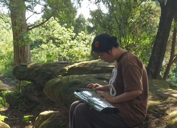 圖為 團隊成員正在溫習古琴  覃懿榆 攝