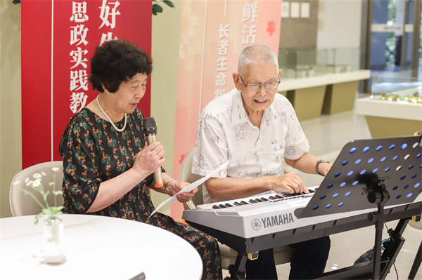 “我當(dāng)時喜歡彈鋼琴,而她唱歌非常好聽,我覺得我找到了懂自己的靈魂伴侶,雖然她那時是農(nóng)民,當(dāng)時大家嫌她沒文化,但是我不嫌棄她,堅持和她在一起。”國際退休村歌詠班的長者陳爺爺飽含深爺爺用鋼琴一邊彈奏,一邊與老伴合唱起《小草》,悠揚而飽含真情的歌聲穿透歲月,將當(dāng)年支援大西北的奮斗歲月、與病魔斗爭的抗癌故事,相伴一生相互扶持的生活點滴逐一舒展浮現(xiàn)。