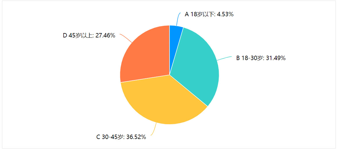 A 18歲以下 B 18-30歲    C 30-45歲   D 45歲以上