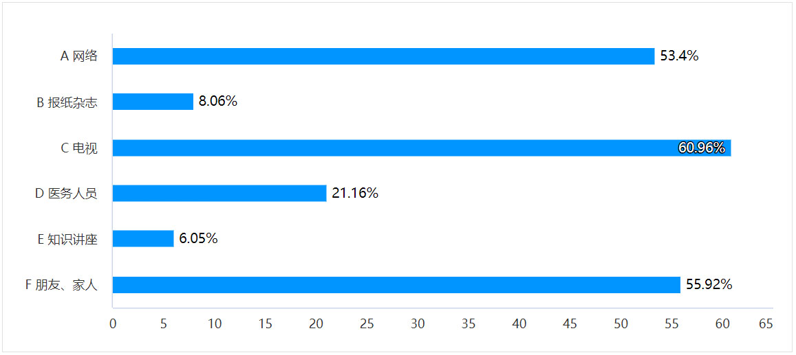 根據調研數據,漁民了解漁業職業病的渠道,有206人選擇了“網絡”,占51.89%,有32人選擇了“報紙雜志”,占8.06%,有245人選擇了“電視”,占61.71%,有85人選擇了“醫務人員”,占24.41%,有25人選擇了“知識講座”,占6.3%,有223人選擇了“朋友、家人”,占56.17%(見圖12)。