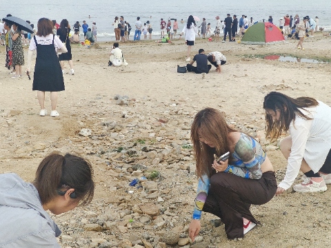 (圖為實踐隊員在金沙灘進行凈灘活動)