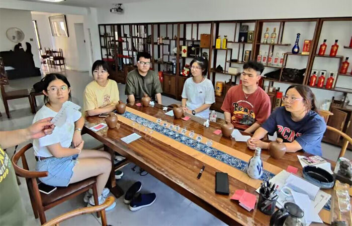 8月20日實踐團成員在工作人員的帶領下進行白酒品評培訓。