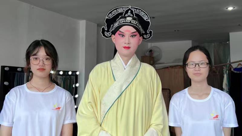 待表演結(jié)束后,成員們來到后臺(tái),采訪了黃老師幾個(gè)問題。當(dāng)問到在中國(guó)式現(xiàn)代化發(fā)展的影響下,作為傳承人應(yīng)當(dāng)做才能推動(dòng)昆曲的發(fā)展時(shí),他首先說在當(dāng)代昆曲不可能會(huì)有太大的發(fā)展,因?yàn)樽鳛橐婚T優(yōu)秀的傳統(tǒng)文化和非物質(zhì)文化遺產(chǎn),昆曲已經(jīng)發(fā)展到頂峰了。但科技的進(jìn)步,確實(shí)也幫助了很多,如現(xiàn)代舞美、現(xiàn)代審美等,這些做好結(jié)合能推動(dòng)昆曲在當(dāng)下社會(huì)的傳播。要糾正的一點(diǎn)是,昆曲作為一門優(yōu)秀傳統(tǒng)文化,最重要的是傳承與保護(hù),只有保護(hù)好了才能進(jìn)行下一步,即發(fā)展創(chuàng)新。在黃老師的回答中,成員們感受到了老師們對(duì)于昆曲的熱愛與希望得到發(fā)展的熱切之情,希望更多的年輕人能體會(huì)到昆曲的藝術(shù)之美,為昆曲的傳承保護(hù)與發(fā)展提供自己的一份力量。