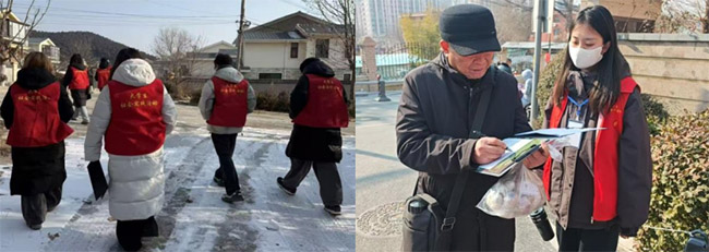(圖為成員們出發進行調研)                               (圖為成員對業主發放問卷進行調研)