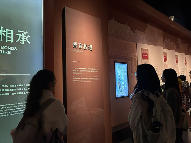 1月27日下午,實踐隊走進中國閩臺緣博物館,以“同文同種、同根同源”為主線,通過展板了解到明清時期赴臺墾殖的民眾中,八成以上為閩南人,他們將閩南方言帶至臺灣,使其成為當地通行的地方方言。在語言互動展區,隊員們還親身體驗了方言的奇妙,通過答題小游戲學習閩南語日常詞匯的讀音與釋義。實踐隊成員在其中慢品閩臺的千年羈絆,切身領悟到兩岸之間的同源文化與同脈親情,在新與舊的對話里,邂逅最深情的“兩岸一家親”。