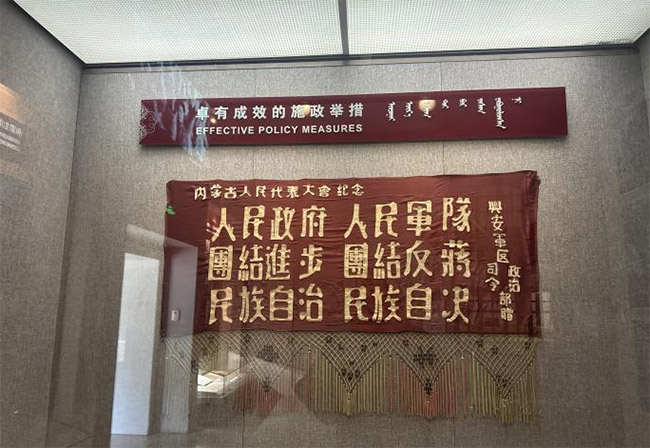 步入紀念館,楊尚昆同志親筆題寫的館名莊重醒目。團隊成員依次參觀各個展廳,通過珍貴的歷史照片、文獻資料與實物展品,全面回顧烏蘭夫同志早年投身革命、堅持抗日救亡、推動民族區域自治、建設祖國北疆的光輝歷程,深刻體會他對黨忠誠、心系人民、維護民族團結的堅定信念。展廳內的每一件文物、每一段故事,都生動展現著草原兒女的革命初心與家國情懷。