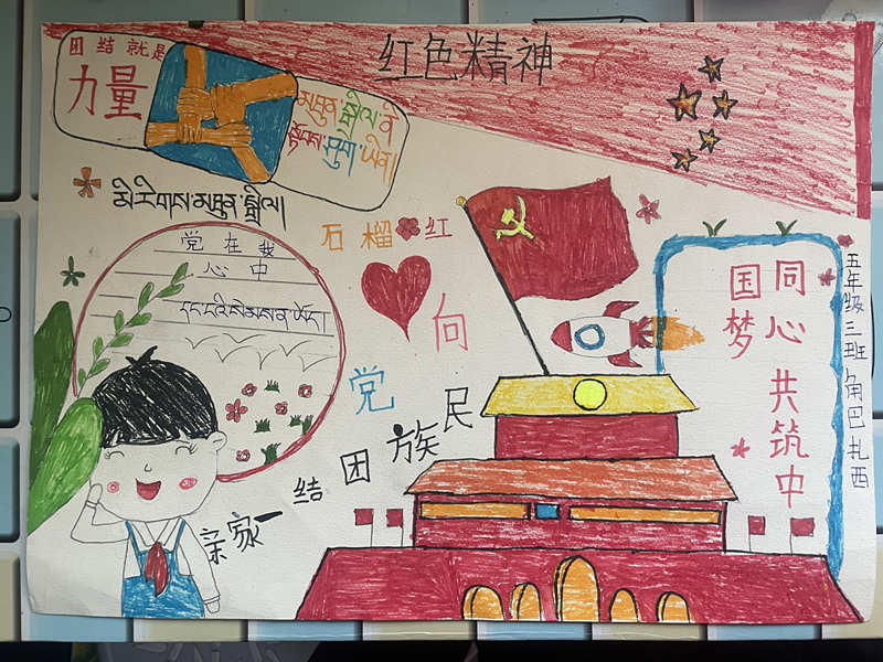 自由是創(chuàng)造的前提。今年是黨的二十大召開(kāi)之年,是中國(guó)共產(chǎn)黨成立101周年,也中國(guó)共產(chǎn)主義青年團(tuán)成立100周年。百年歲月滄桑,百年風(fēng)雨兼程,百年風(fēng)華正茂。“石榴花開(kāi)”實(shí)踐團(tuán)從成立時(shí)間、基本任務(wù)以及重要思想等方面,為同學(xué)們講解了中國(guó)共產(chǎn)黨和中國(guó)共產(chǎn)主義青年團(tuán)的相關(guān)知識(shí),呼吁同學(xué)們堅(jiān)定踐行“請(qǐng)黨放心,強(qiáng)國(guó)有我”的青春誓言,譜寫(xiě)走向新時(shí)代的青春之歌,在實(shí)現(xiàn)中華民族偉大復(fù)興中國(guó)夢(mèng)的征程上跑出最好成績(jī),以實(shí)際行動(dòng)迎接黨的二十大勝利召開(kāi)。“石榴花開(kāi)”實(shí)踐團(tuán)帶領(lǐng)少數(shù)民族同學(xué)結(jié)合“同心”課程前期所學(xué)到黨史知識(shí),鼓勵(lì)同學(xué)們發(fā)揮自己的想象力與創(chuàng)造力,利用創(chuàng)作手抄報(bào)、三行情詩(shī)和藏語(yǔ)書(shū)法多種形式表達(dá)對(duì)祖國(guó)的熱愛(ài)之情,為黨的生日送上祝福。