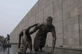 先是圍繞在建筑旁的水上浮雕,他們無聲的站在那,就站成了一段活生生的民族苦難史。那個仰望蒼天、無聲落淚的母親;那少年背著被炸死的奶奶亡命奔突;那個男人攜著自己八十多歲的老母親……他們都沒能逃過惡魔的燒殺奸淫!