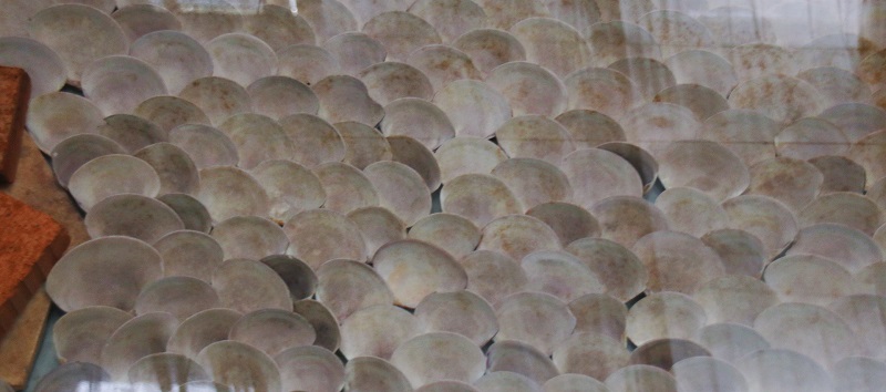 據了解,浙江省海洋水產養殖研究所先后承擔國家“科技富民強鎮項目”計劃,浙江省“十二五、十三五、十四五”水產育種專項,國家藻類產業技術體系-溫州綜合試驗站等項目,選育出國家水產品新品種“浙東1號”,為推動當地大型海藻產業發展做出了重要貢獻。跟隨張老師的步伐,我們緊接著進入洞頭基地的壇紫菜生產育苗車間。整個車間里對稱分布許多育苗大水池,在水池底部魚鱗般整齊地擺放著數不清的貝殼。通過張老師的講解,隊員們了解到這些貝殼都是壇紫菜育苗的附著基質。“進行壇紫菜育苗需要人工一個一個將貝殼有序排列然后進行播種,再經過半年時間才能完成”,張老師補充道。聽到這些,隊員們無不感受到水產養殖的辛苦和水產養殖研究的不易,更加深刻體會到了“嚴謹求實,拼搏奉獻”的水產人精神。