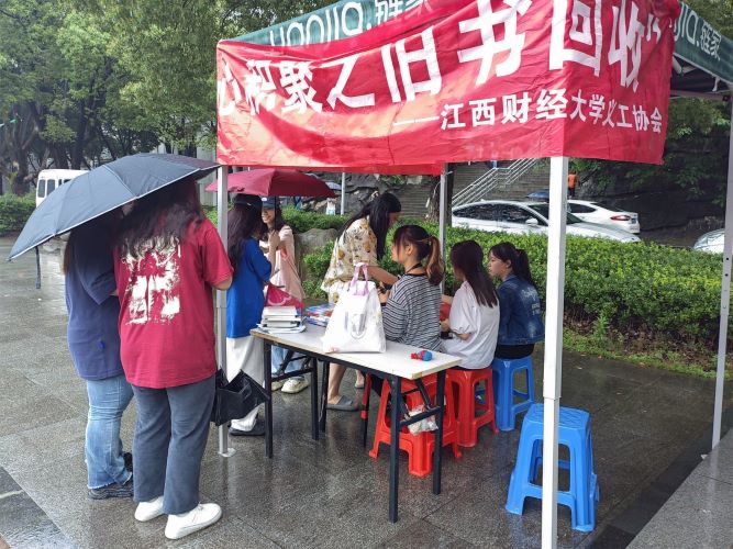 愛心積聚 舊書回收隨著現代科技的發展,越來越學生更青睞電子書籍,大部分的紙質書籍被荒廢甚至丟棄。對此,江西財經大學義工協會愛心積聚部與校外環保公益組織攜手于5月21日分別在麥廬園校區十二生肖廣場和蛟橋北區大禮堂門口舉辦面向全校師生的“愛心積聚,舊衣回收”公益回收活動。本次活動旨在動員同學們捐出閑置書籍,合理利用資源,弘揚愛心奉獻精神,助力環保事業。