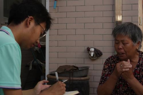 圖為問渠青訪團成員常高瑋同學采訪楊香蓮奶奶