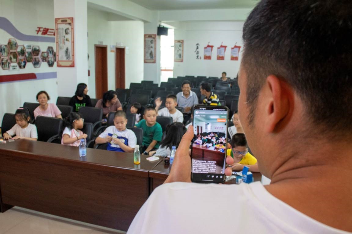 (圖為侯官村委會(huì)代表對(duì)支教活動(dòng)進(jìn)行現(xiàn)場(chǎng)直播    通訊員蔡思奇攝)