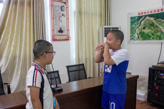 (圖為侯官村孩子們進(jìn)行英語(yǔ)教學(xué)小游戲    通訊員蔡思奇攝)
