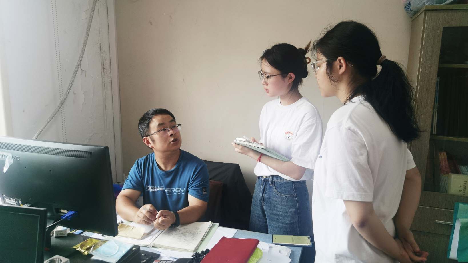 圖為實踐隊隊員對后大街社區黨委委員副主任姚遠進行專項訪談。