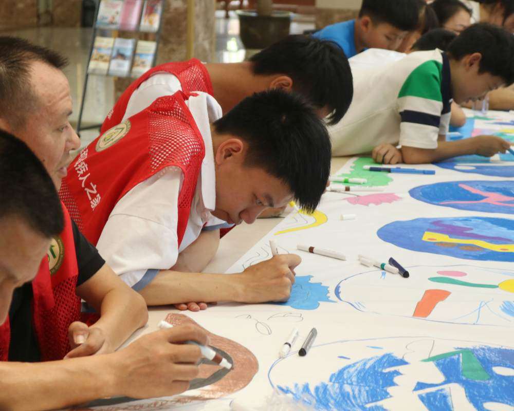 同時,在活動里,團隊成員與殘疾人朋友們相互配合,對殘疾人而言,小隊成員們不僅僅是繪畫的協作者,更是友好的伙伴。他們用真心和耐心幫助每一位殘疾人朋友克服繪畫上的困難,釋放出他們內心的創造力和潛能,攜手共向燦爛未來。