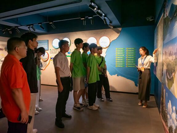 實(shí)踐隊(duì)來(lái)到木蘭溪治理展示館。在展示館工作人員的帶領(lǐng)下,實(shí)踐隊(duì)參觀了“為民情懷”“科學(xué)決策”“率先垂范”“久久為功”四個(gè)部分的主題展示內(nèi)容,了解了木蘭溪從水患頻發(fā)、談溪色變到變害為利、造福人民的過(guò)程,重溫了木蘭溪在“9914”臺(tái)風(fēng)災(zāi)害后,在黨的正確領(lǐng)導(dǎo)下的蛻變之路。大家不禁紛紛感嘆,并表示要踐行初心使命,久久為功、埋頭苦干,深入學(xué)習(xí)宣傳貫徹黨的二十大精神與習(xí)近平總書記治理木蘭溪的重要理念,以實(shí)際行動(dòng)促進(jìn)人與自然和諧共生,共同建設(shè)綠色家園,把青春華章寫在祖國(guó)大地上。