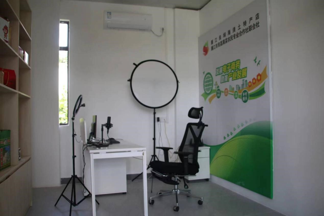 圖為中塘村直播室的場地布置及設備 黃嘉銘 攝