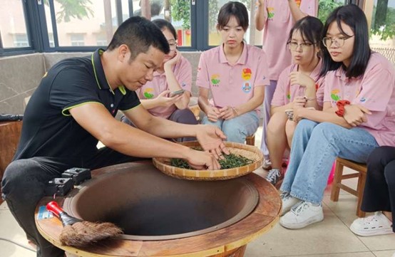 第二天,隊員們帶著采摘回來的茶葉來到茶室,開始了炒茶的步驟。炒制茶葉是一個需要技巧和耐心的過程。隊員們仔細觀察茶葉的變化,不斷調整火候和炒制時間,認真聆聽茶園專家對炒茶手法的指導,以保證茶葉的色香味俱佳。通過實踐,隊員們深刻體會到了茶葉加工過程的復雜性和技術含量。茶葉的每一個環節都需要精心呵護和細致處理,只有如此,才能保證制作出優質的茶葉。