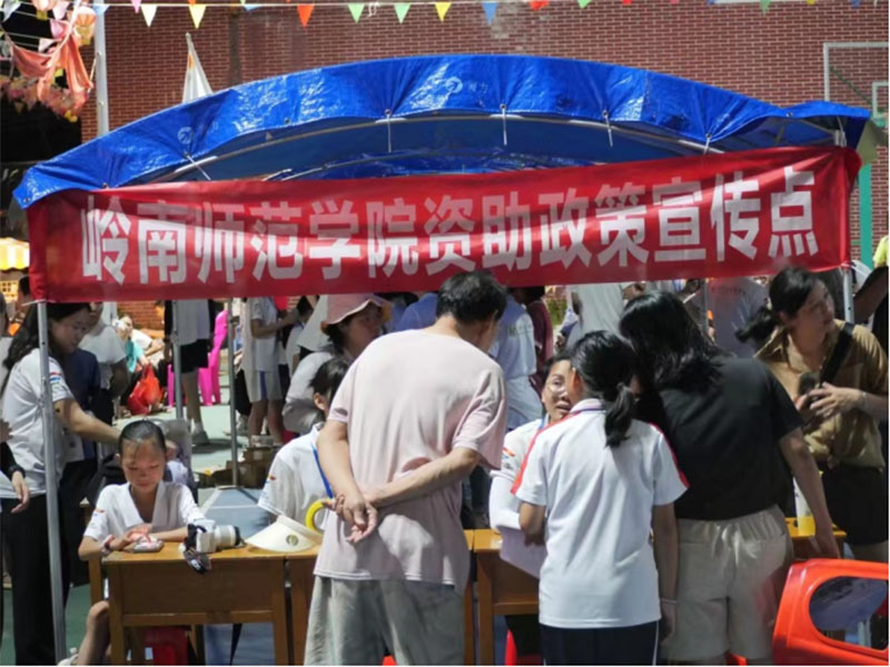 7月9日下午,為使廣東省本專科學生資助政策落地生根,嶺南師范學院體育科學學院“萌芽”社會實踐隊在吳川市塘綴鎮板橋文化屋開設嶺南師范學院資助政策宣傳點,接受當地村民的咨詢問答并派發具體文件資料。