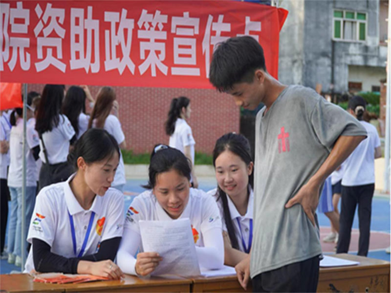 “嶺師的特色政策都有什么啊?”“怎樣才能取得資助政策的資格?”在咨詢點,村民們紛紛提出自己的疑惑,“嶺南師范學院特色資助措施共分為六項,一是校內獎學金,二是勤工助學,三是四大資助包,四是畢業生學費減免,五是早餐補助,六是愛心驛站。”體科院助學中心副主任侯簡陸耐心地為村民們講解著資助政策。遇到聽力或者視力不佳的家長,隊員們會熱心地貼近他們的耳朵,細細為他們講解政策要點,并反復確認他們是否理解。
