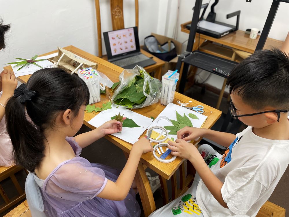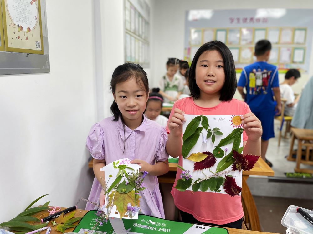 滴水行動織夢實踐隊帶領孩子們在盛夏的綠葉中放飛想象。社區學生通過樹葉拼貼畫的制作認識千姿百態的植物,感受大自然的奇妙;學習創作思路和構圖思路,鍛煉了藝術思維與動手能力的同時有助于學生熱愛、尊重自然。