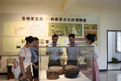 走進六堡鎮,古色古香的六堡牌坊首先映入眼簾,以包容之姿,廣迎四方來客。沿六堡牌坊向前,步入六堡茶博物館。館內收入藏品百余件,包含歷代茶文化文物、古蒼梧文物、制作工具等。實踐團成員跟隨講解員的步伐,邊走邊看邊聽,通過一張張照片,一件件實物,了解六堡茶歷史沿革內容、傳統制作工藝、現代生產技術及發展前景,感受獨具特色的六堡茶文化。