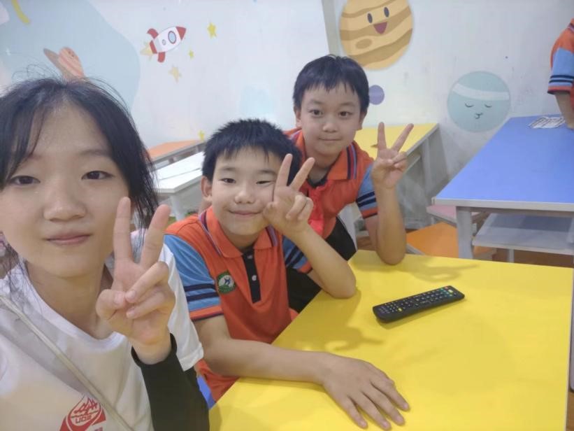 初見孩子們時,便被他們的可愛吸引,成年人的世界難免有些憂心事,孩子們的笑卻不會摻著半點雜念。他們笑著牽起我的手,讓我給他們的畫寫上名字,早上和我分享一顆糖果,在課間跑來抱住我......孩子們的善意不斷稀釋著我第一次被叫“老師”的緊張。我開始感覺到這種簡單卻真誠的雙向交流是多么令我幸福,看到他們就有一種遇見兒時自己的奇妙感和親切感。