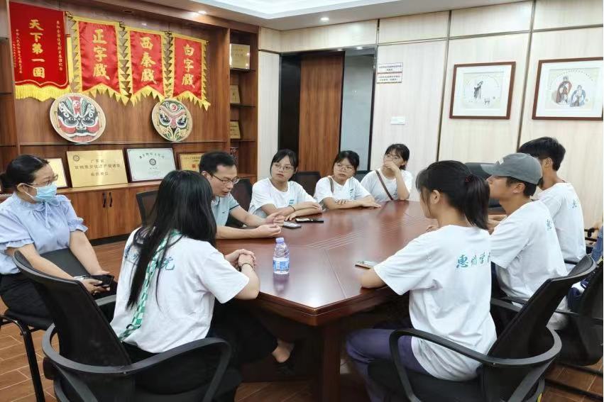 7月19日,團隊來到了汕尾市文化館參觀學習并對負責非遺宣傳工作的劉館長進行了采訪。據劉館長透露他已經從事非遺保護工作20余年,文化館作為文化部門,始終堅持中國共產黨的領導,承擔起非遺文化傳承保護工作責任,助力汕尾非遺文化保護與傳承。 劉館長還提出在戲曲非遺文化傳承與發展工作方面,文化館有開展春秋兩季的培訓班以及舉辦相關的活態非遺的展覽活動;并且館內正在建設汕尾市地方戲曲研究創作室,將邀請戲劇資深藝人進行劇本的創新,協助劇本的回收與貯存。