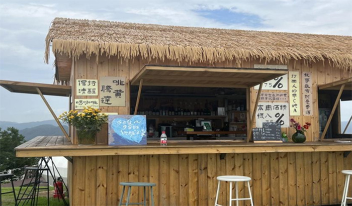 實踐團成員們慕名前往,乘著觀光車來到了山頂,入眼便是一座古樸的小小咖啡屋?Х任莸囊贿吺菬净,另一邊賊坐落著大大小小的白色尖頂帳篷。一路行至山頂露臺的邊緣,東岠島連著周圍的海景風光,盡收眼底。