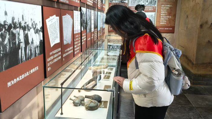 團隊成員有序走進范筑先烈士故居,依次參觀故居內的生活居所、陳列展區,逐件端詳留存的舊物、手稿、書信等珍貴物件,記錄展品背后承載的革命歲月與先輩風骨,在實景實物中觸摸那段波瀾壯闊的抗戰歷史。