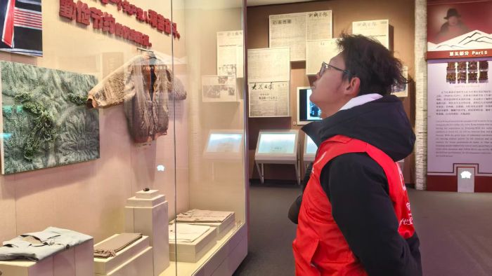 一位隊員俯身湊近展柜,目光先掠過里面的舊物,又順著展板文字慢慢移動。她的眼神里滿是認真,仿佛跟著展陳的脈絡,一步步走進孔繁森扎根高原、把百姓當親人的滾燙歲月里。