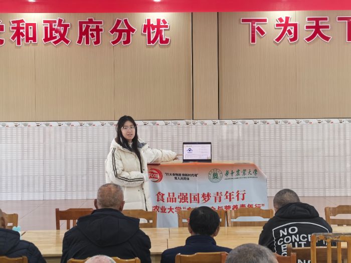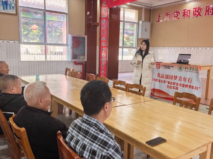 宣講現場,熊紆倩楠通過真實案例講解黃曲霉素等有害物質的危害,教老人們掌握“看、聞、摸”的食品變質辨別技巧和科學儲存方法。針對養老院老人中高血壓、糖尿病等慢性病高發的特點,熊紆倩楠重點講解低鹽低糖膳食搭配原則,推出控鹽、穩糖、營養“三把鑰匙”,結合本地常見食材對比分析,將專業的營養知識轉化為“炒菜晚放鹽”“選燕麥棄白粥”等可直接落地的飲食技巧。