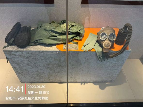 “紅色文化博物館”大門兩側(cè),兩尊栩栩如生的抗日英雄雕塑首先映入眼簾,抗日時期鐵血男兒的事跡也在背后做了詳實的介紹。即便只是兩篇篇幅并不算長的的文章,也足以讓人在那字里行間深刻體會到江淮抗日時期英雄們的熱血精神,敬畏無比。“貫徹二十大 實現(xiàn)強國夢”的橫幅在大門上方迎風飄揚,不僅是和國家站在統(tǒng)一戰(zhàn)線上所喊出的最響亮的口號,也是中國人民對于國家和黨寄托的美好期望。