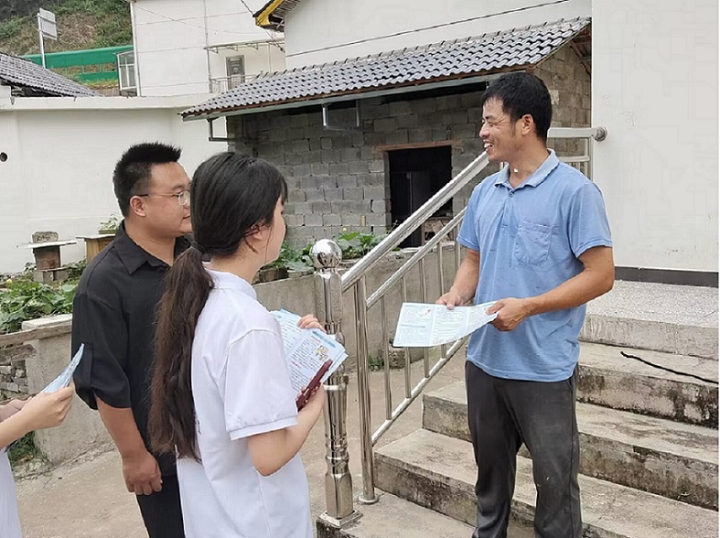 由實(shí)踐團(tuán)隊(duì)長(zhǎng)楊浩帶領(lǐng)實(shí)踐團(tuán)成員向石臺(tái)縣仁里鎮(zhèn)緣溪村書(shū)記胡來(lái)輝匯報(bào)此次實(shí)踐活動(dòng)成果。實(shí)踐團(tuán)通過(guò)挨家挨戶對(duì)村民進(jìn)行防詐騙知識(shí)宣傳,提高緣溪村村民的防范意識(shí);對(duì)兒童進(jìn)行防溺水知識(shí)宣講以及他人落水時(shí)正確的處理方法,加強(qiáng)兒童對(duì)自身安全的防范意識(shí)。對(duì)村民進(jìn)行黨的二十大精神和黨的百年發(fā)展史宣傳,增加村民對(duì)黨的認(rèn)識(shí),跟從黨的領(lǐng)導(dǎo),為實(shí)現(xiàn)中國(guó)式農(nóng)業(yè)現(xiàn)代化作出自己的貢獻(xiàn);對(duì)兒童進(jìn)行二十大精神的講解,培養(yǎng)兒童吃苦耐勞,刻苦學(xué)習(xí),努力奮斗的精神。匯報(bào)成果后,實(shí)踐團(tuán)與緣溪村書(shū)記和村民們依依不舍的告別。