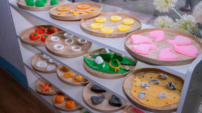 非遺手工課堂上熱鬧非凡。隊員們耐心指導(dǎo)孩子們制作紅桃粿,稚嫩的小手在面團(tuán)與印模間靈動翻飛,一個個形態(tài)憨拙、充滿童趣的紅桃粿逐漸成型。在親手制作的過程中,孩子們不僅感受到了這項非遺技藝的獨特魅力,更在心中播下了文化傳承的種子。