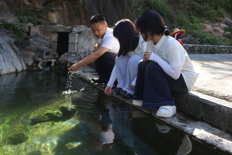 分工明確后,峨溶鎮團委副書記黃修華隨即帶領團隊成員奔赴峨溶鎮天然溫泉源頭,開展實地調研工作,為后續茶旅路線的開發收集關鍵數據與科學依據。