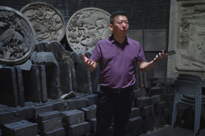 圖為徽磚非遺傳承人黃師傅講解徽磚發展。王梓仰 攝