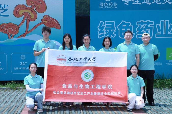 7月5日,合肥工業大學食品與生物工程學院“靈”生江淮、“芝”引振興暑期社會實踐團隊走進金寨縣綠色藥業有限公司開展參觀交流活動,通過實地考察與深度訪談,探尋企業在靈芝加工產業綠色發展道路上的實踐與探索。