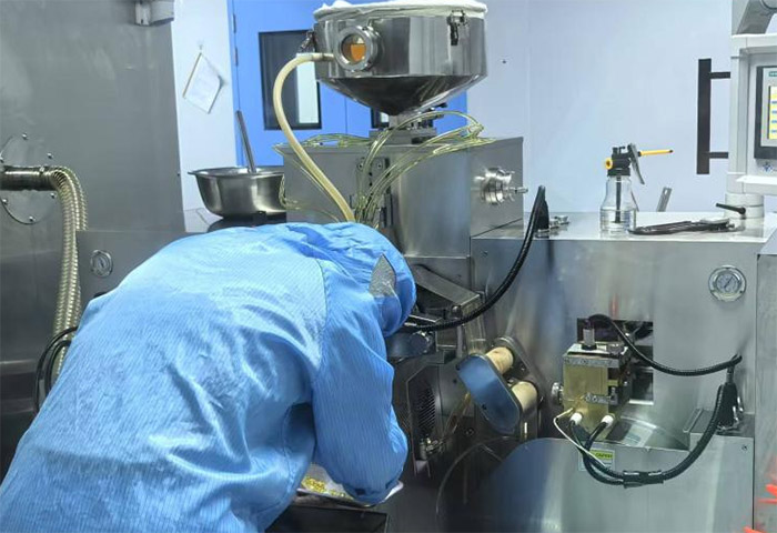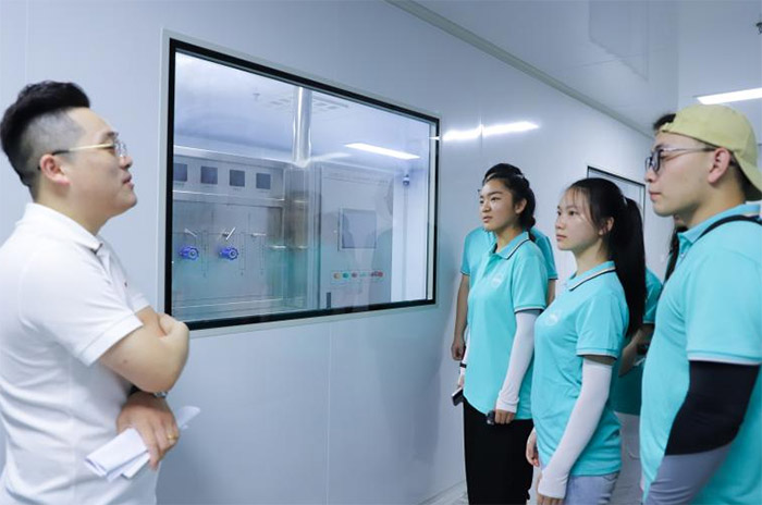當日上午,在金寨縣綠色藥業有限公司負責人彭杰的引導下,團隊成員開啟了生產車間的參觀之旅。從原料前處理到成品生產區,各功能區域規劃科學、布局合理,充分展現了現代化藥企的規范與高效。步入寬敞明亮的車間,智能化、自動化設備有序運轉。據公司負責人介紹,目前車間很多設備都已實現全自動化,減少了人力資源的消耗,大大提高了生產效率。