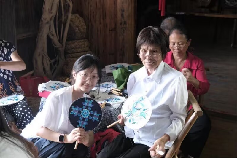 在訪談中,苗繡傳承人向隊員們講述了她與苗繡的故事。從外婆手中的繡花針到她如今教授的青年學徒,歲月在指尖流淌,非遺文化在薪火相傳中煥發新生。然而,她也坦言,隨著年輕人外出務工,苗繡技藝的傳承面臨著傳承者數量匱乏的困境。