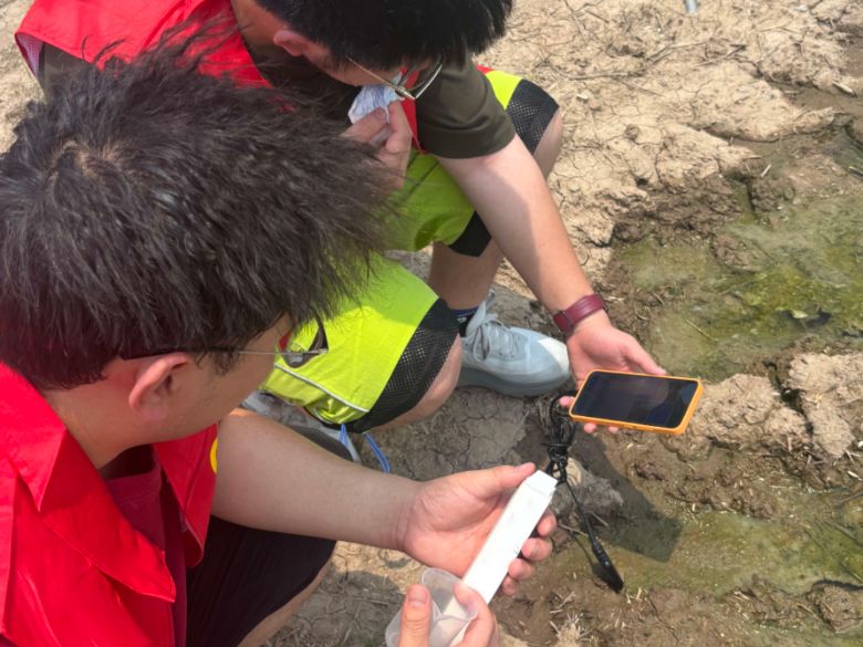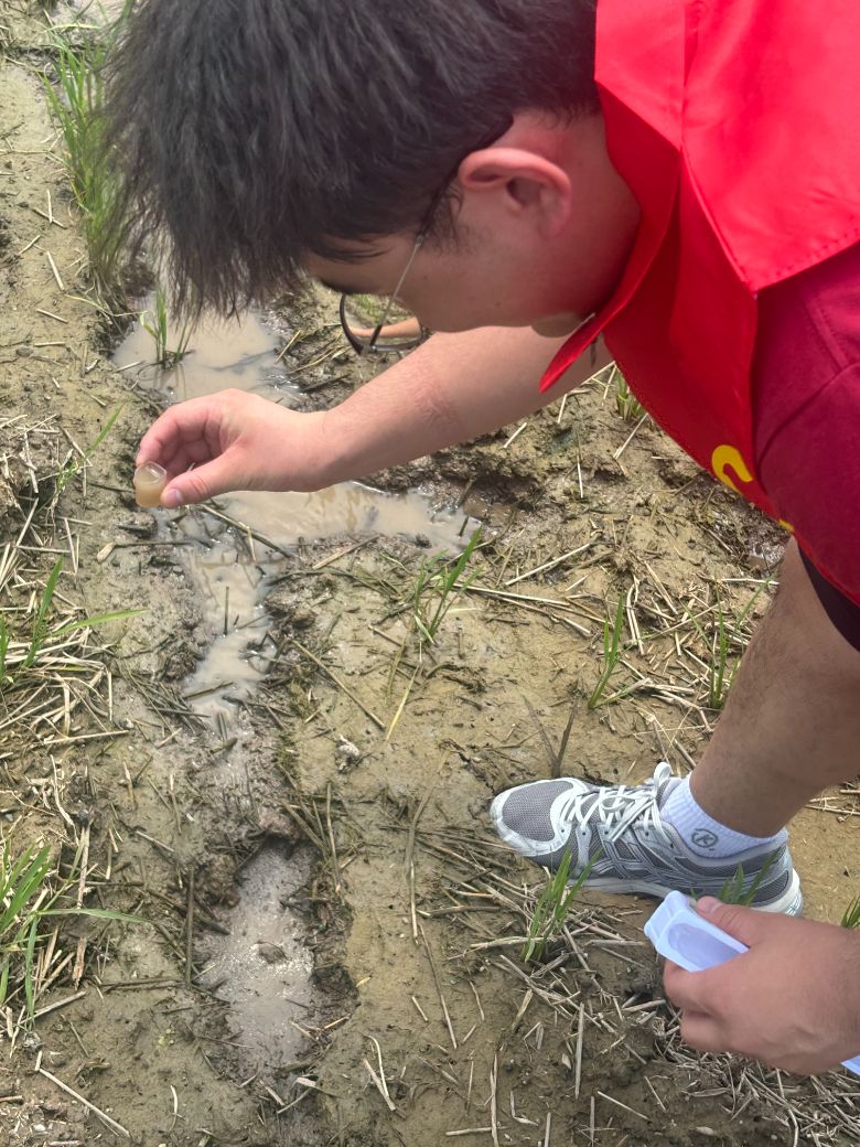 為獲得直接環境參數,團隊頂著烈日分組深入田間,科學采集水稻土樣本及水源樣本。現場測量關鍵指標包括:土壤含水量、電導率(鹽分)、酸堿度、速效氮磷鉀含量以及周邊水質。共收集有效數據組16套。這些詳實的本底數據,不僅服務于碳足跡模型的輸入參數,也為識別潛在環境影響因素、提供農田管理優化建議提供了堅實可靠的實證依據。動手實踐極大鍛煉了同學們野外采樣和科學分析的技能。